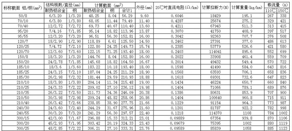 1、NRLH10GJ鋼芯耐熱鋁合金導線長期工作溫度150℃。