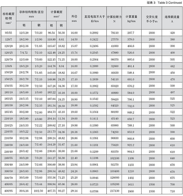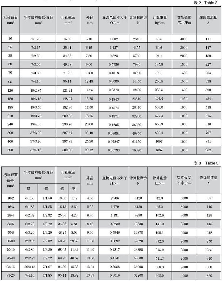 1.鋁絞線及鋼芯鋁絞線的直流電阻符合表2及表3規(guī)定。