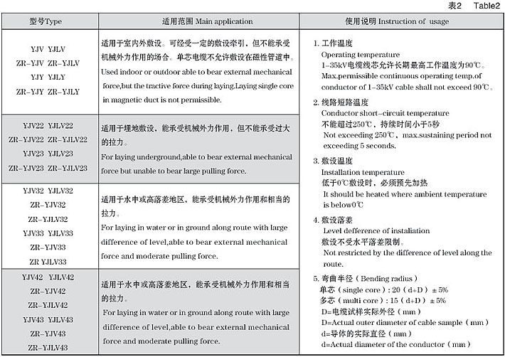 注:可根據(jù)用戶要求生產(chǎn)低煙無鹵、阻燃耐火及耐高溫和耐低溫電纜,阻燃耐火電纜能達到阻燃IA級、耐火I級,符合GB/T19666-2005標準。阻燃電纜在原型號前加"ZR",耐火電纜在原型號前加"NH",低煙無鹵、阻燃耐火電纜在原型號前加"WDZN"。