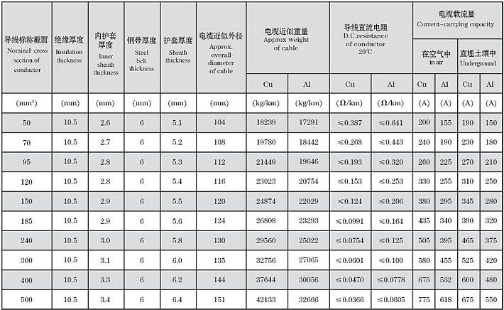 注:單芯鋼絲鎧裝電纜具有隔磁措施。